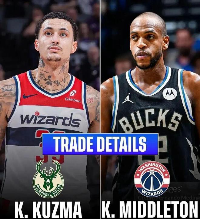 今年二月份,雄鹿将冠军功勋后卫米德尔顿、AJ-约翰逊和一个28年首轮互换权送至奇才,换回库兹马、小鲍德温以及一个25年次轮签。其实该笔交易,最主要便是米德尔顿与库兹马互换东家。