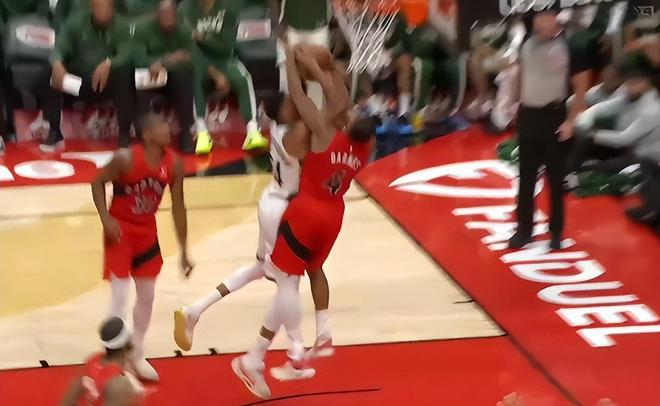 第三节扬尼斯又一次转身被巴恩斯直接摁掉,巴恩斯这场比赛是紧贴扬尼斯,在大帽后他还示意争球,巴恩斯就是想要挑衅字母哥。