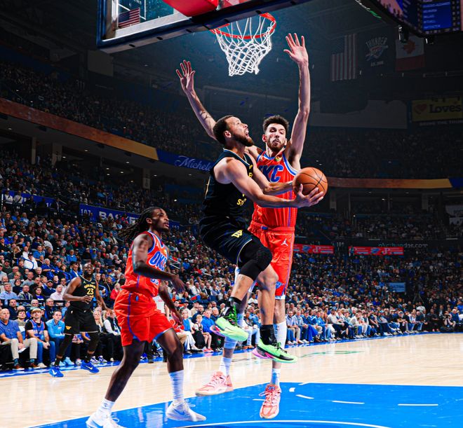 赛前勇士媒体写道,库里最近五次打雷霆:36分、34分、30分、40分、38分,也就是五连30+,但此役后这个纪录就中断了。